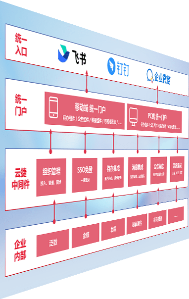 对协作平台提供支持服务,,,支持企业应用与协作平台对接,,包含组织同步、、、消息集成、、待办集成等。。。支持目前主流的协作平台:钉钉、、企微和飞书。。